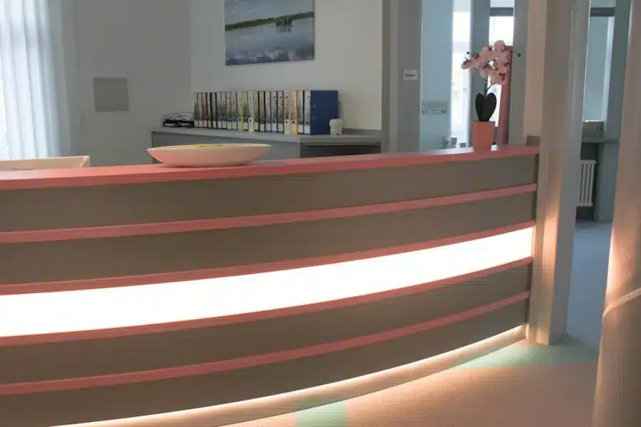 Betrachten Sie daher Ihre Praxis kritisch, als wären Sie Ihre eigener Patient und fragen sich: Wie wirkt der Empfangsbereich auf mich? Kann ich mein Anliegen diskret erklären? Wo befindet sich der Warteraum; ist es dort ruhig und behaglich? Denn hier verbringe ich möglicherweise längere Zeit …